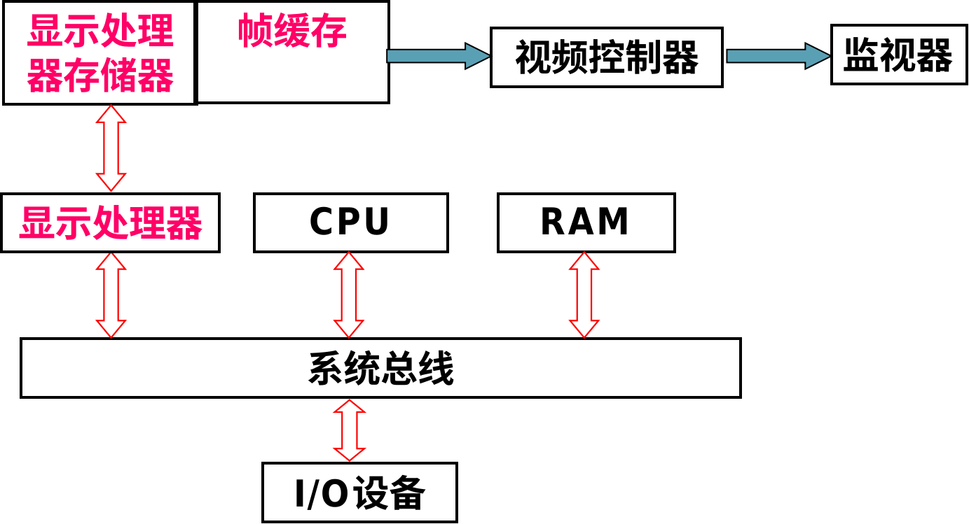 帧缓存:一块专门的内存区域,也就是显存,屏幕上每个像素的颜色值都存储在帧缓存对应的地址中。视频控制器不断地从帧缓存中读取数据,并将其转换为模拟信号(或数字信号)控制显示器的亮度/颜色