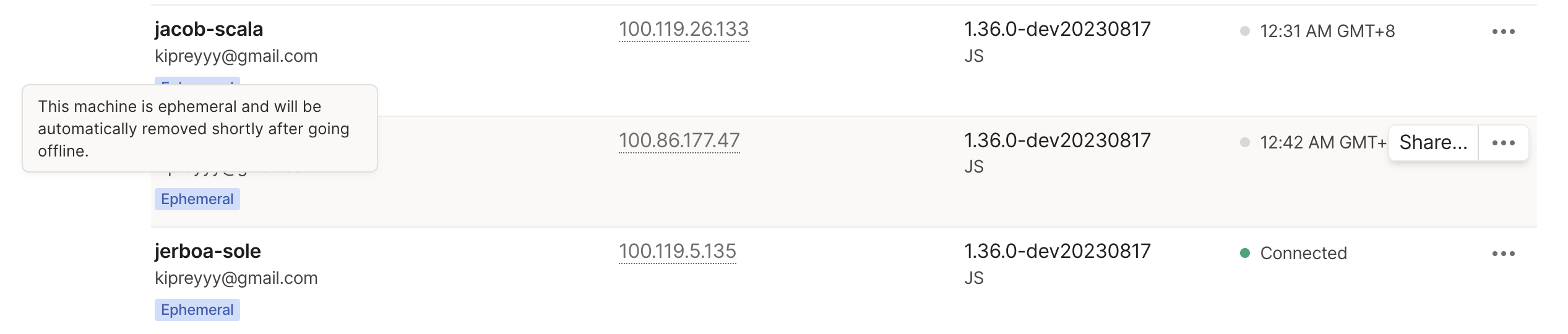 • tailscale 只会在需要与 peer 建立连接的时候才会尝试打洞,而且最开始的流量一定是会经过 DERP 中转服务器。(非常的 Lazy…)