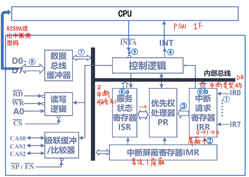 - 结果: 如果一切通过,8259 向 CPU 发出 INT (High Level) 信号。