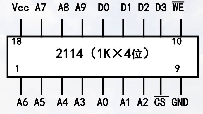 地址端:$A_9 \to A_0$ ($1k = 2^{10} = 0 \to 9$)