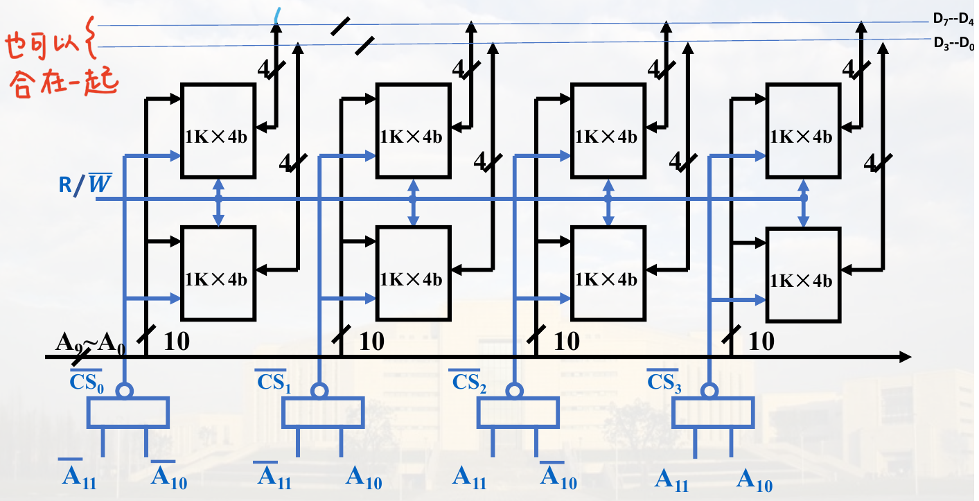 上图为 1k * 4 bit 的例子。