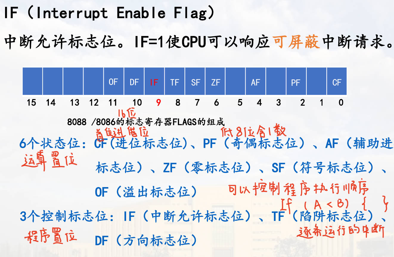 INT引脚有信号。如果 CPU 内部的中断允许标志 (IF) 是开的,CPU 就会回送一个信号 —— INTA (Interrupt Acknowledge)。- 含义: CPU 说:“我听到你了,准备处理。你是谁?”
